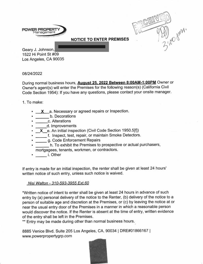 TO: nisi@powerpropertygrp.com; francisco@powerpropertygrp.com; hcidla.rso.central@lacity.org; hcidla.reap@lacity.org; mayor.helpdesk@lacity.org; controller.galperin@lacity.org; gilbert.cedillo@lacity.org; councilmember.krekorian@lacity.org; councilmember.blumenfield@lacity.org; contactcd4@lacity.org; paul.koretz@lacity.org; councilmember.rodriguez@lacity.org; councilmember.price@lacity.org; councilmember.bonin@lacity.org; councilmember.lee@lacity.org; councilmember.ofarrell@lacity.org; councilmember.kevindeleon@lacity.org; councilmember.buscaino@lacity.org; info@housingrightscenter.org; contact.center@dfeh.ca.gov; jivar.afshar@lacity.org; fred.wong@lacity.org; lisa.yancey@lacity.org; joe.velasquez@lacity.org; bruce.todd@lacity.org; 09e41e7459a05677911c@powerpropertygroup.mailer.appfolio.us; cynthia@powerpropertygrp.com; highpoint1522@gmail.com; frontdesk@powerpropertygrp.com; councilmember.harris-dawson@lacity.org; lahd.rso.central@lacity.org; brent@powerpropertygrp.com; thomas@powerpropertygrp.com; meghan@boldpartnersre.com